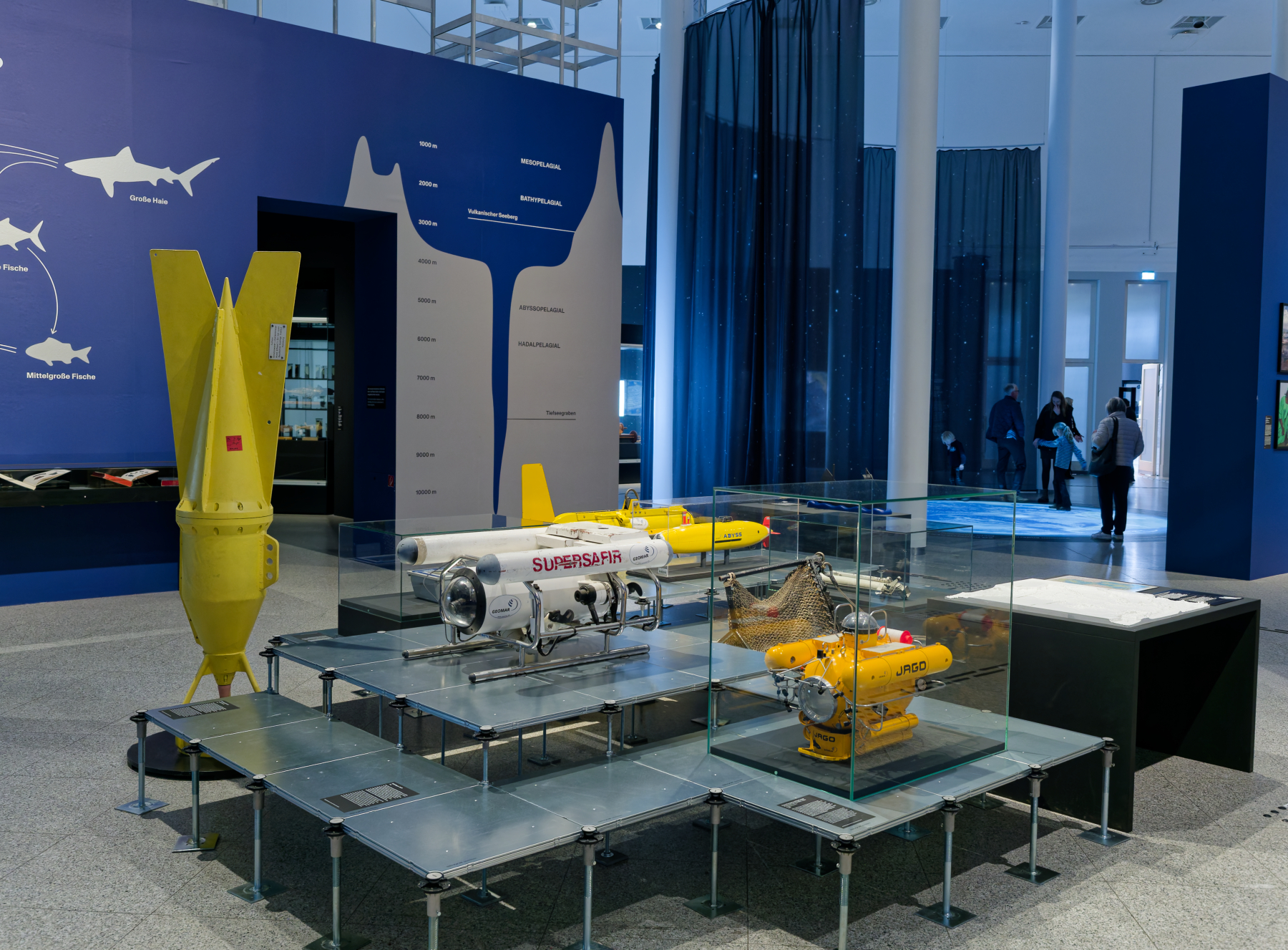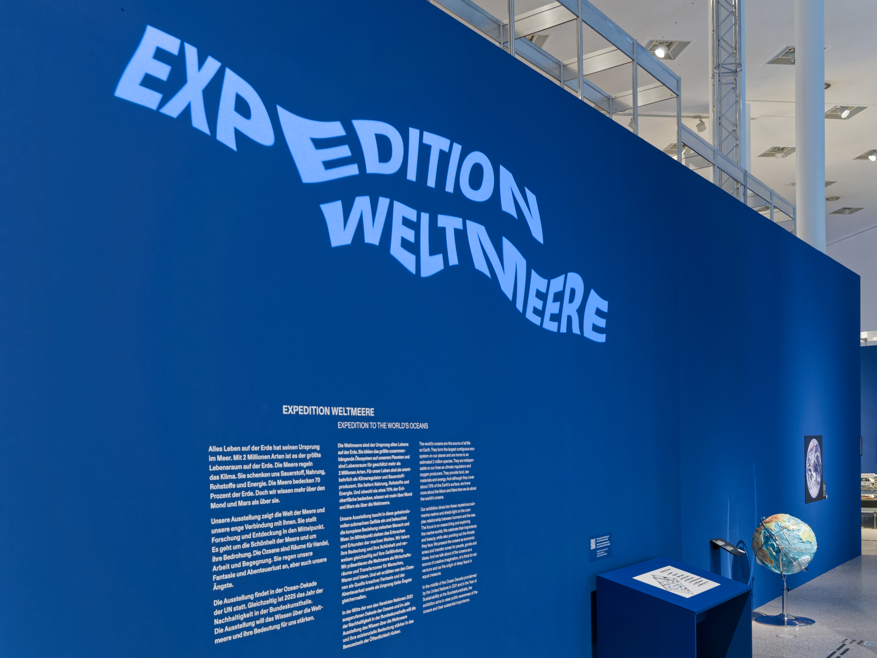 Expedition Weltmeere konzentriert sich auf drei große Themenschwerpunkte: Die Tiefsee mit ihren rätselhaften Lebenswelten und dem fragilen Ökosystem, die Weltmeere als umkämpfter Wirtschaftraum und schließlich die Weltmeere als Sehnsuchtsort und Transferraum für Menschen und Ideen. Diese geheimnisvollen Gefilde waren schon immer eine Inspirationsquelle für Fantasie und Kreativität: Neben Originalobjekten aus Natur, Wissenschaft und Technik führen historische Kunstwerke und zeitgenössische Positionen die bedrohte Schönheit der maritimen Flora und Fauna vor Augen und animieren zum Nachdenken über die wechselvolle Beziehung zwischen Mensch und Meer. (Quelle geomar.de)